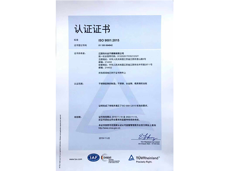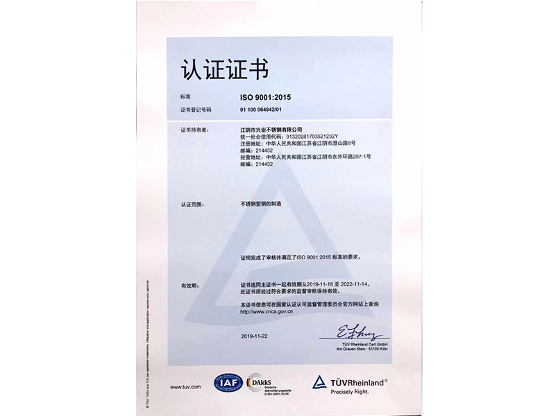 本公司按照ISO9001:2015質(zhì)量管理體系的標(biāo)準(zhǔn)要求,建立了質(zhì)量管理體系,并通過(guò)TUV認(rèn)證